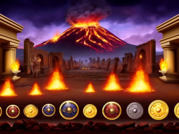 Pompeii Megareels Megaways™’e Genel Bakış Vezüv yanardağının arka planda olduğu lavla kaplı bir manzara içerisinde, Pompeii Megareels Megaways™ size kazanma şanslarının patlamasını sunuyor. Zırhlar, kalkanlar ve altın madalyonlar gibi semboller,